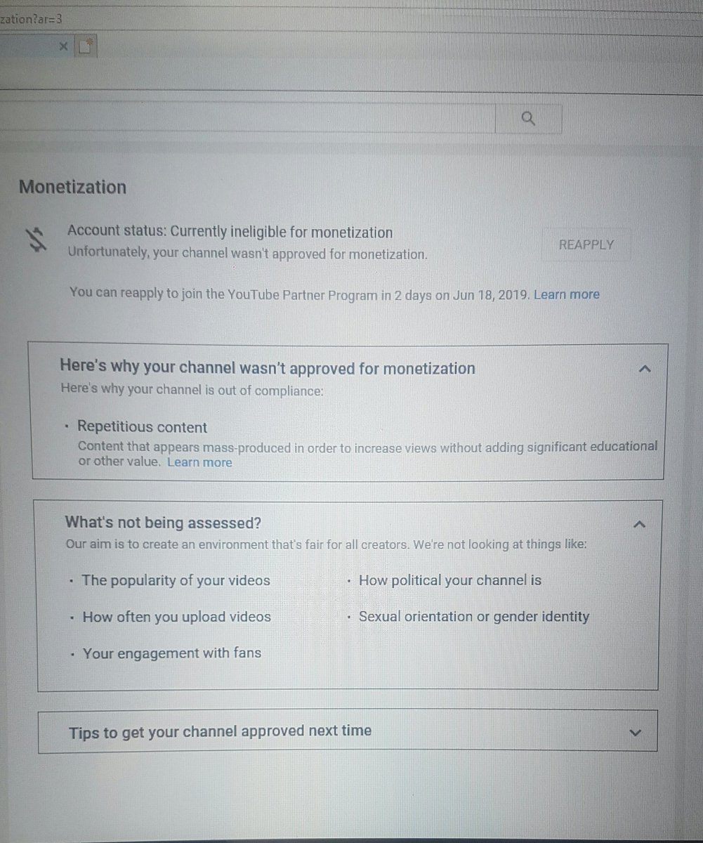 @TeamYouTube buenos días! Tengo un canal que no pasó la revisión por contenido repetitivo. Llevo un mes en el que todos los vídeos tienen mi propia voz, siguiendo vuestros consejos de la última vez. Podríais echarle un vistazo rápido a mi canal a ver si cumpliría cuando aplique?