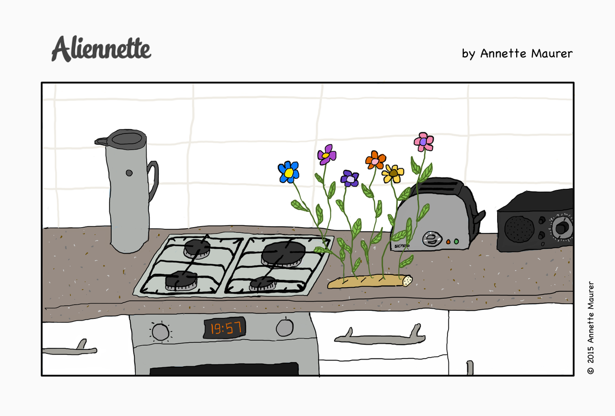 Drawing: In Catalan, bread doesn't mold, it flourishes! http://aliennette.com/post/126378220152/in-catalan-bread-doesnt-mold-it-flourishes-im …pic.twitter.com/si43pv7mgI