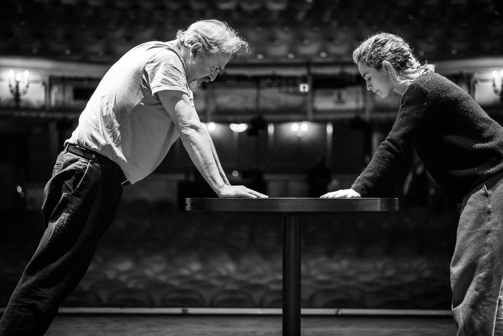 Stanley Townsend and Lily James prepare for a performance of