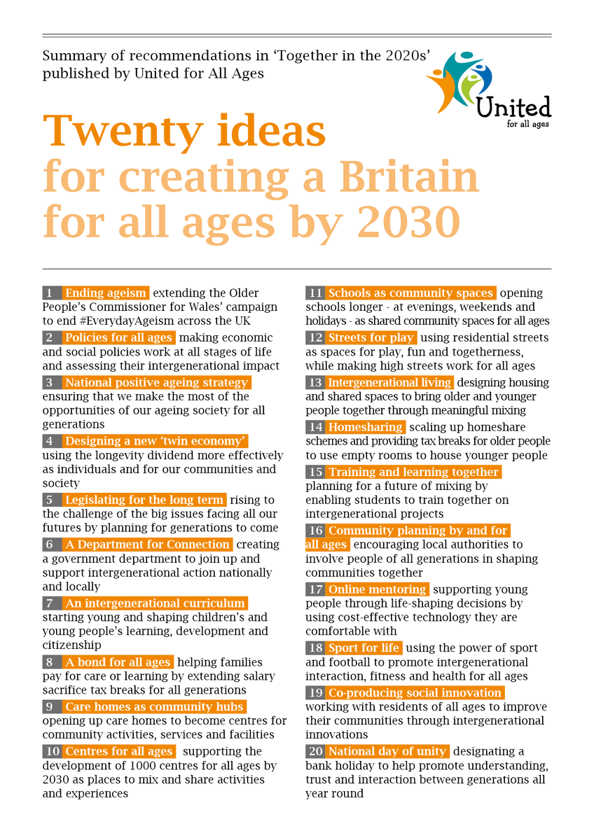 United for all Ages set out there recommendations for the best ideas to create a Britain of all ages