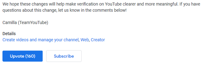 It should be easy to know when you’ve found the official YouTube channel of a creator, artist, brand, or public figure. So in late October, we’re updating what it means for channels to be “Verified” w/ new eligibility criteria & a new look. Details → https://yt.be/help/3QfB pic.twitter.com/JXOvMbkbns