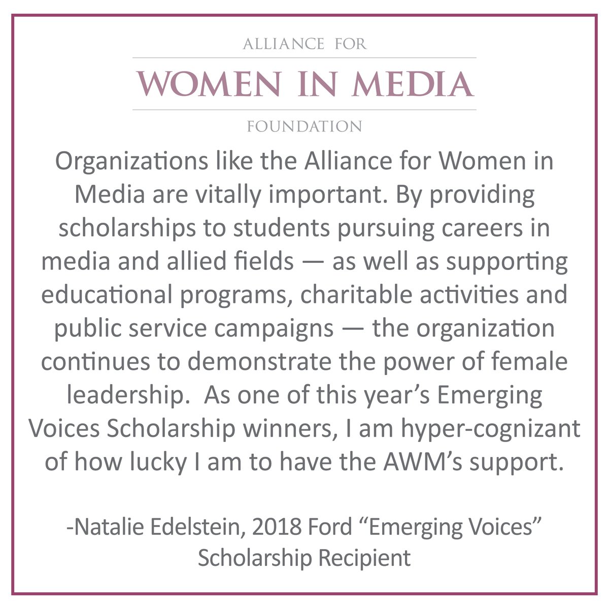 To read more of Natalie Edelstein’s blog post, visit https://allwomeninmedia.org/2018/11/26/natalie-edelstein-2018-emerging-voices-scholarship-recipient/ …. To help us provide scholarships to more deserving women, please visit https://allwomeninmedia.org/foundation/donate/ … to donate.