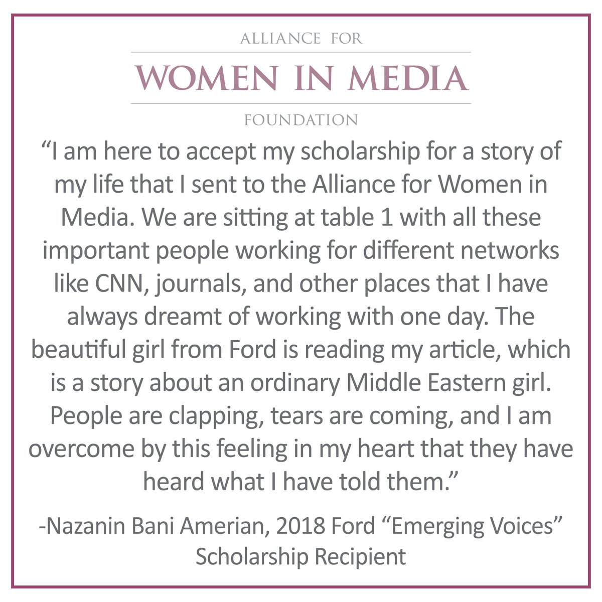 To read more of Nazanin Bani Amerian’s blog post, visit https://allwomeninmedia.org/2018/11/29/nazanin-bani-amerian-2018-ford-emerging-voices-scholarship-recipient/ ….pic.twitter.com/qLCGX1o2cz