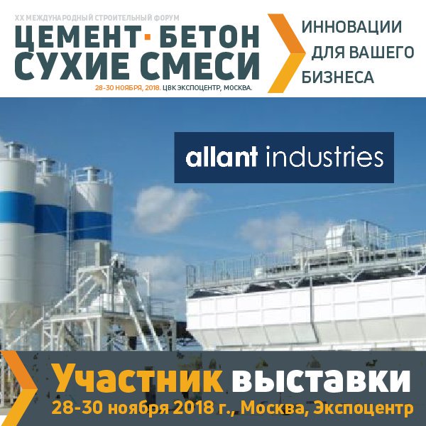 ALLANT INDUSTRIES and ARCEN offers the best solutions for mixing processes and concrete batching plants. Welcome to contact us at the exhibition Cement.Concrete.Dry mixes-2018 in Moscow 28.11.-30.11.