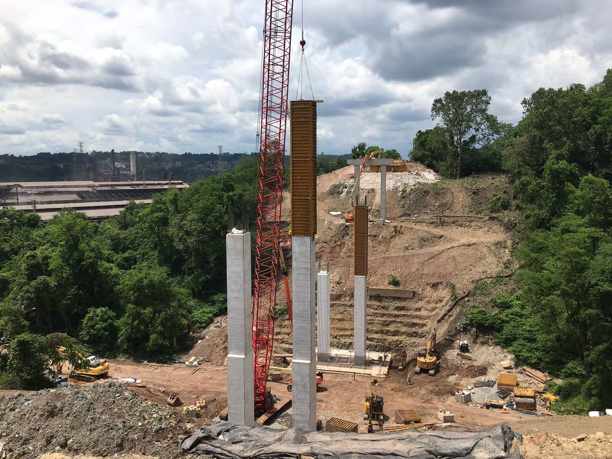 The new Dooker’s Hollow Bridge in North Braddock & East Pittsburgh is taking shape. Public Works’ contractor & subcontractors have been hard at work removing debris, excavating, building concrete piers & setting its horizontal steel support beams – also known as girders. (1/3)pic.twitter.com/QRKRnewV5m