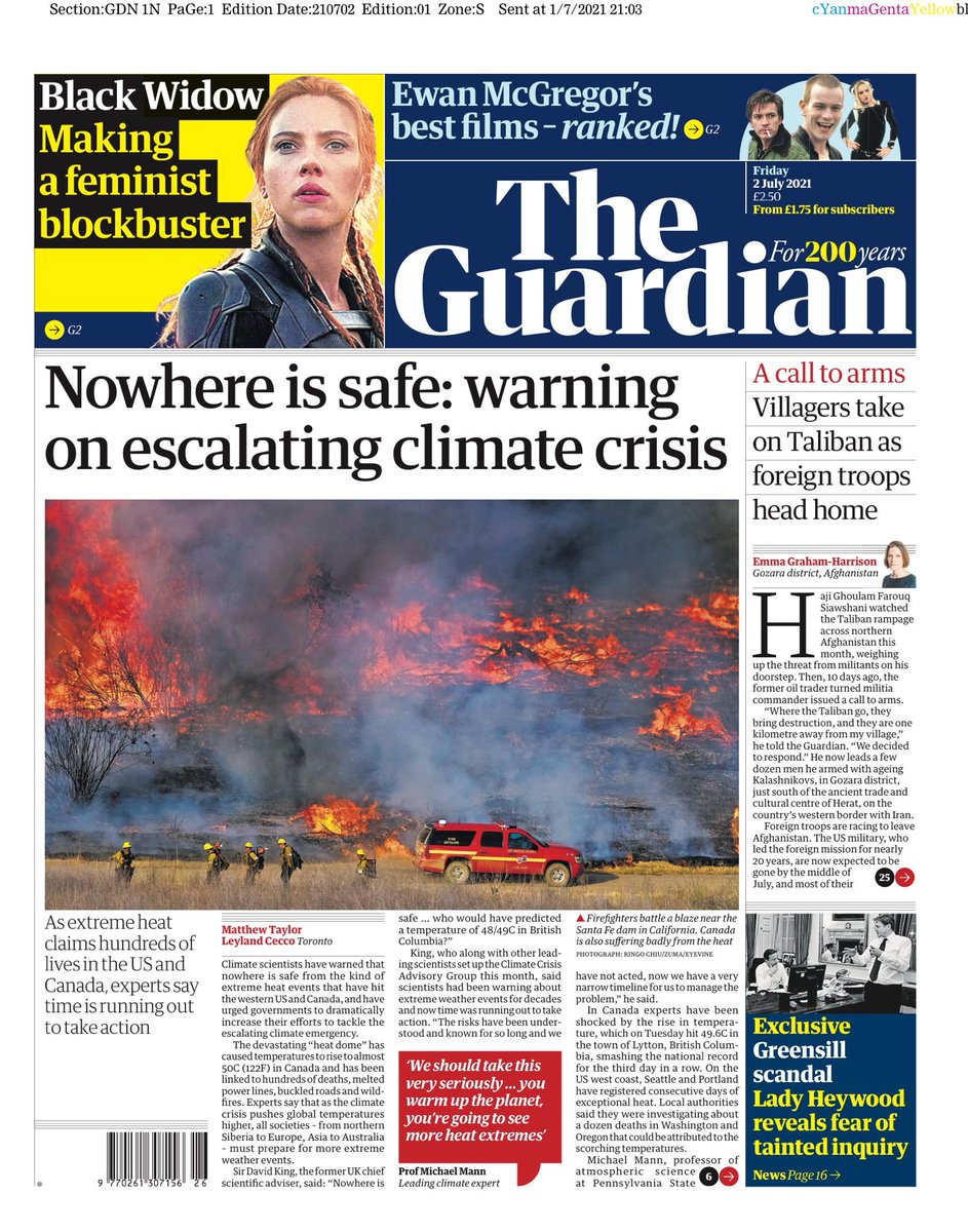 Friday’s GUARDIAN: “Nowhere is safe: warning on escalating climate crisis” #TomorrowsPapersTodaypic.twitter.com/Q9E2lvQHls
