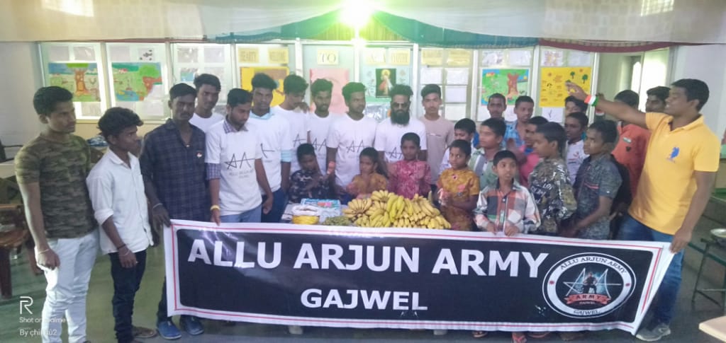 #AlluArjunArmy team Gajwel celebrated#RepublicDay today at an Orphanage Distributed fruits,sweets and biscuit packets to children