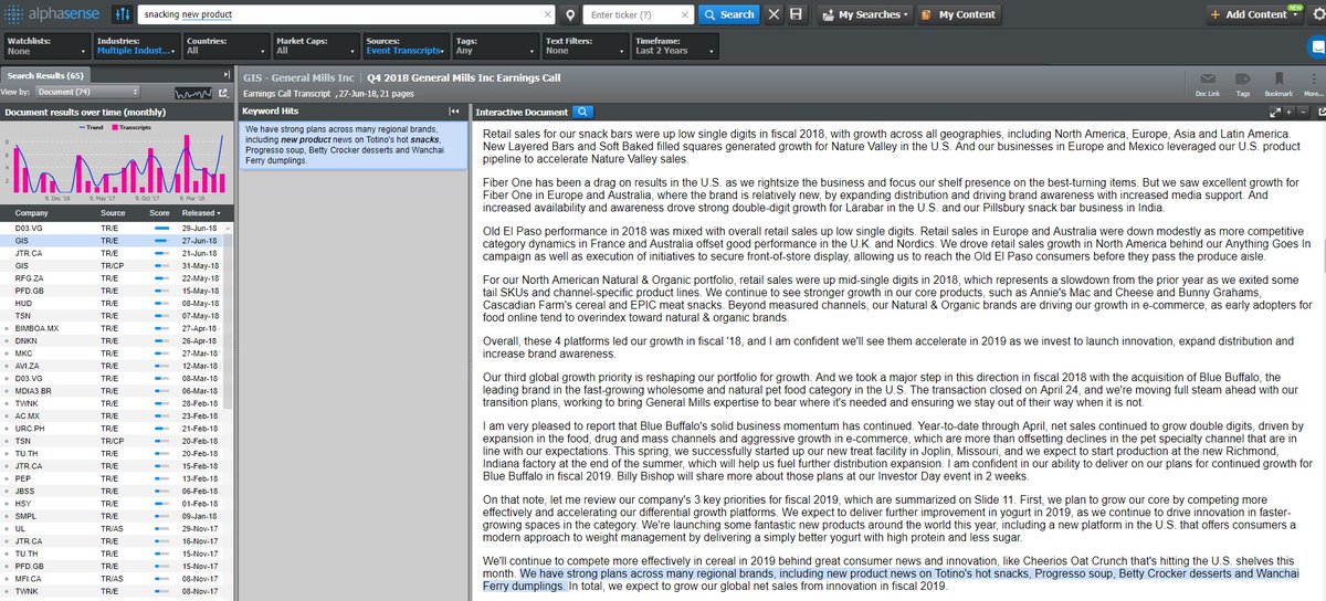 Does the @smuckers sale of @Pillsbury make you hungry for insights into consumer companies' snack strategies? AlphaSense gives you a fast view into what @GeneralMills and others are revealing on earnings calls about new snack launches.pic.twitter.com/d6tIjtrV67