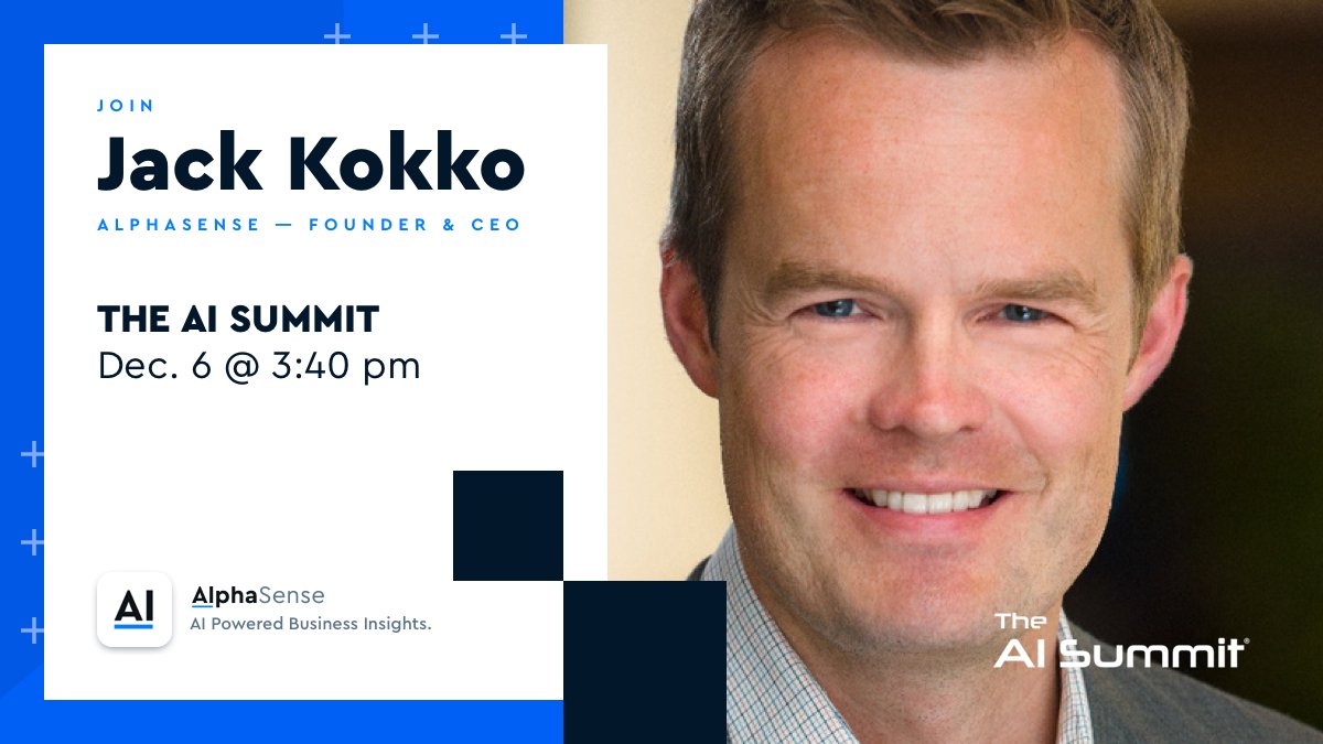 Join AlphaSense founder and CEO Jack Kokko TODAY at #AISummit New York for an in-depth discussion on how #AI is transforming the workplace. Learn more here: https://bit.ly/2di5WRG pic.twitter.com/Mpcw3qin9O