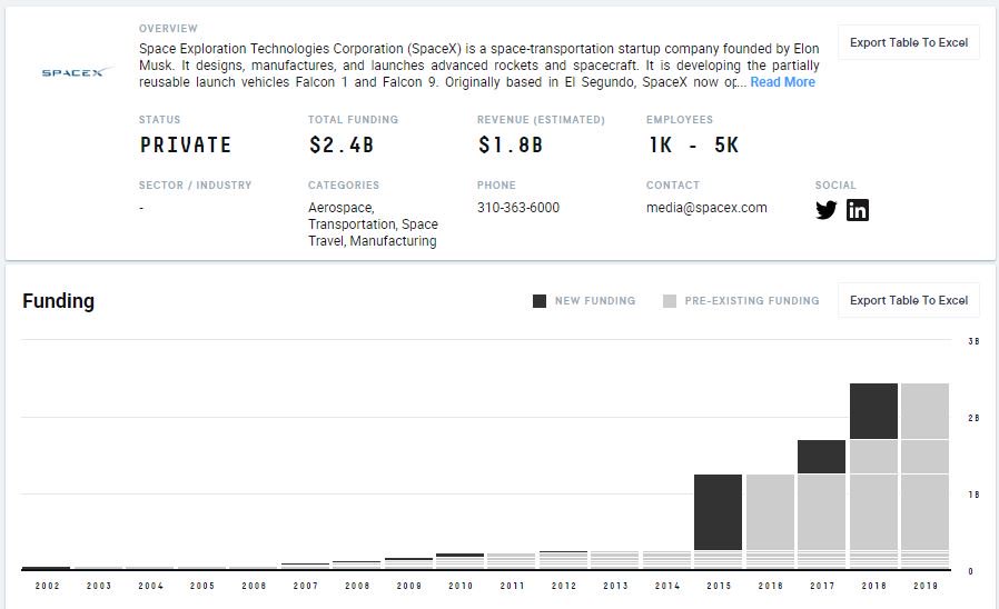 #SpaceX to raise another $500M - with AlphaSense, you can easily view, export & share private company data, including funding history: https://bit.ly/2UNUsNF pic.twitter.com/JuvdWqT9My