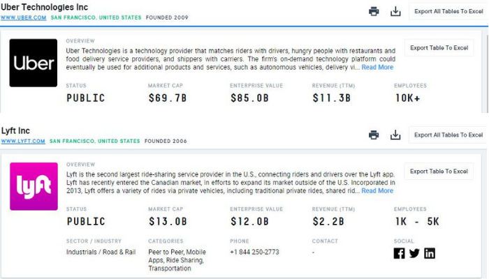 Following the impact of the #Uber and #Lyft IPOs? With AlphaSense entity pages, you can view and export all company financial data with one simple ticker search: https://bit.ly/2W3oMnZ pic.twitter.com/lI5Q3y3adz