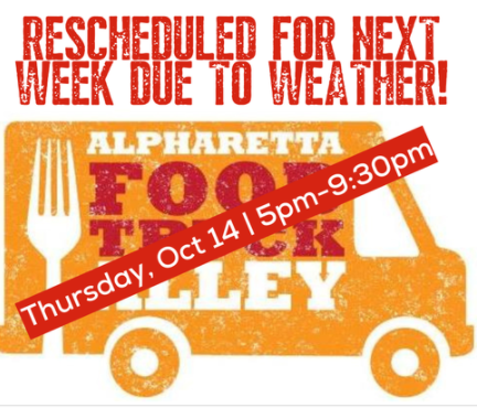 Boooo on this weather! The season finale for Alpharetta Food Truck Alley has been rescheduled for next week!pic.twitter.com/xgEKapSVGM