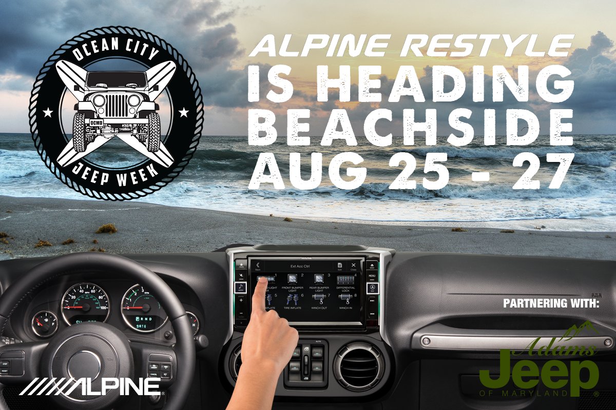 #AlpineRestyle is headed to@OCJeep (Ocean City Jeep Week)! We'll have 3#JeepWranglers- come visit! Booth Space S-6pic.twitter.com/zAl1YAAOLp