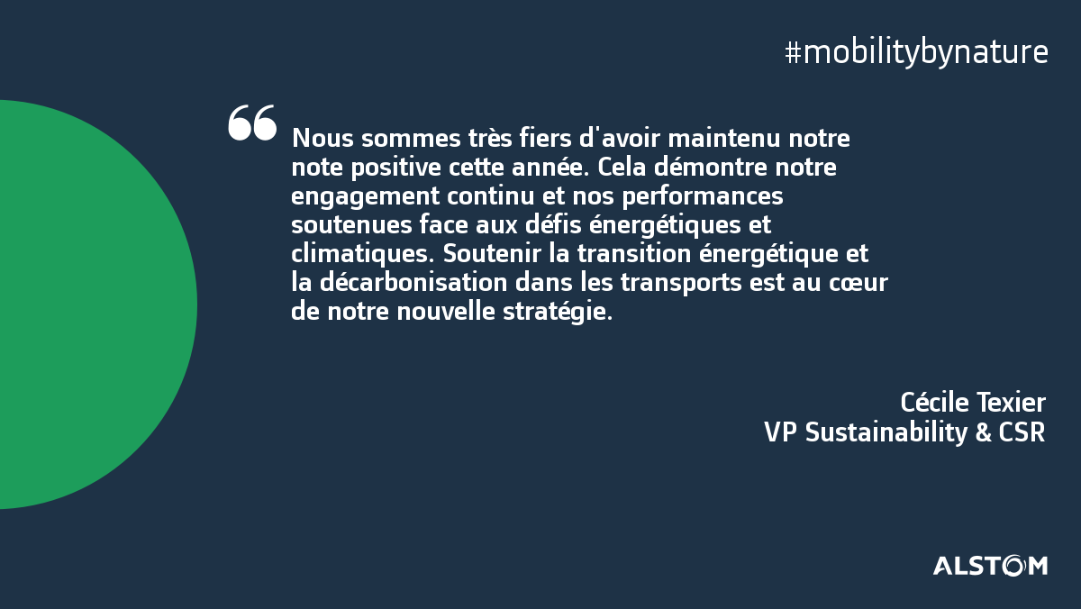 Alstom obtient la note "A-" au classement 2019 établi par le Carbon Disclosure Project (