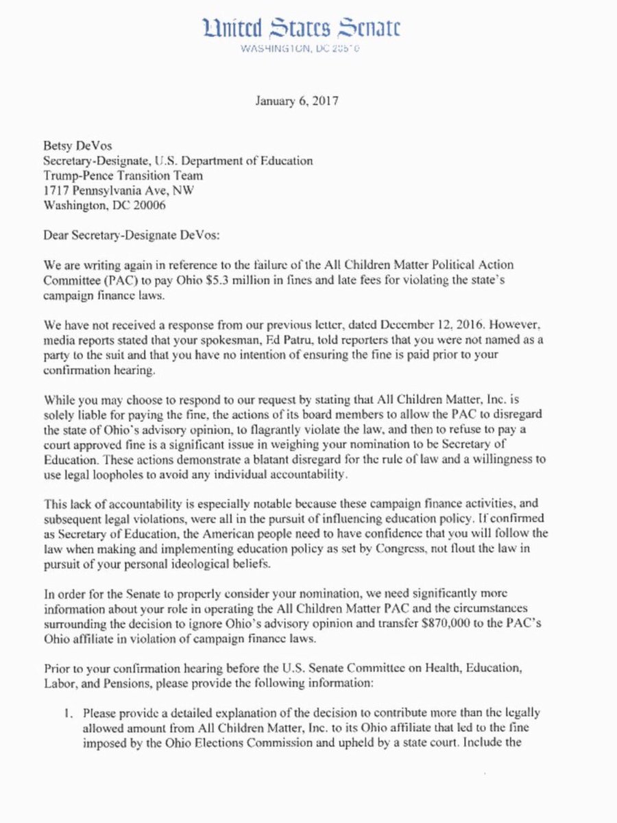 #BetsyDeVos - Our new Ed Sec has a $5.3M fine SHE STILL OWES - for breaking election laws in OH.#DeVos.pic.twitter.com/oqfp1jUON0