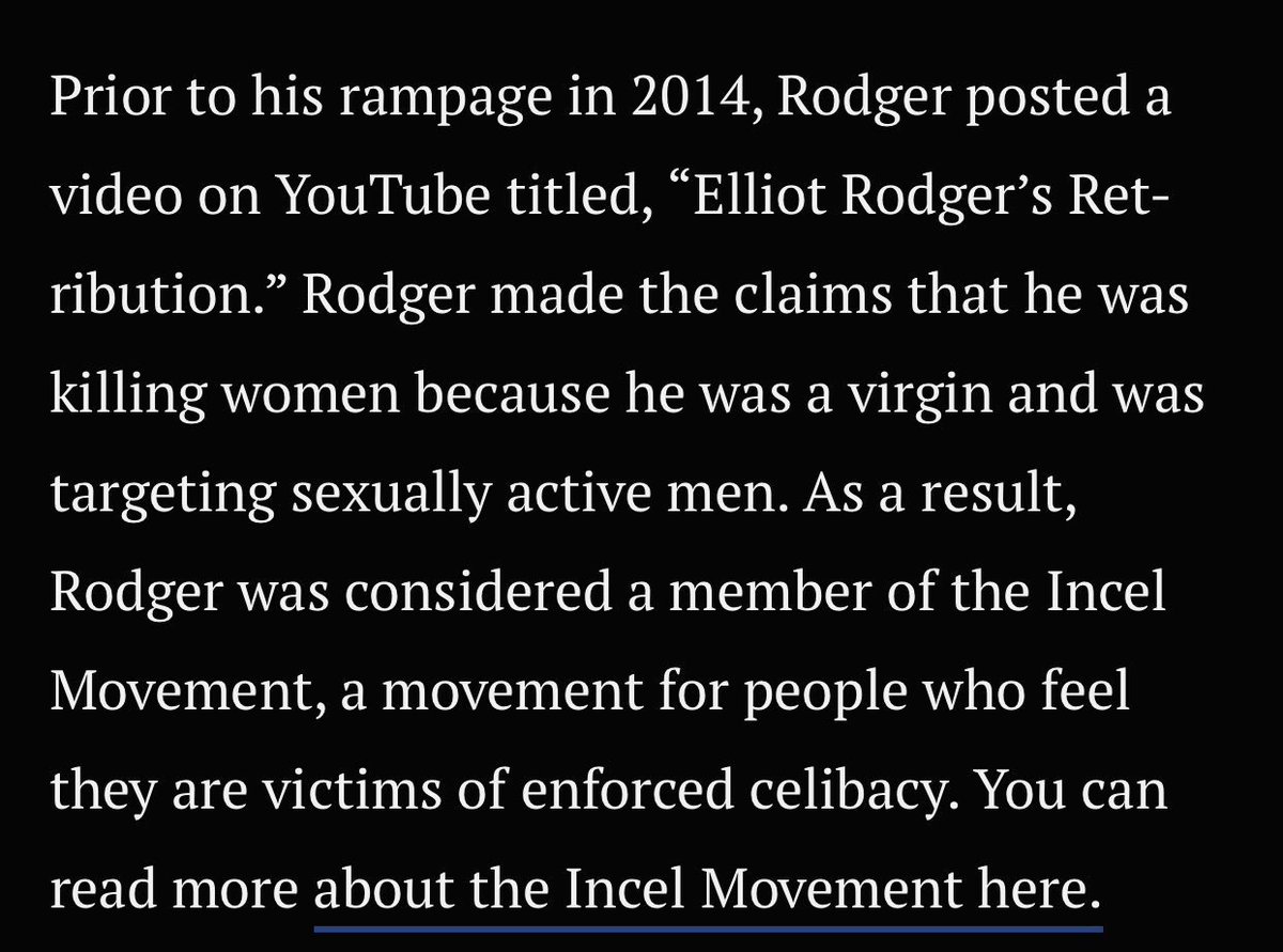 Both I’d imagine, he already bragged about killing people that were sexually active. I’d say the incel movement is an ideology.pic.twitter.com/wIPfUn8Rz7