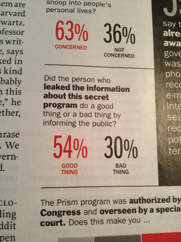 In a TIME Magazine poll, 54% of Americans said Edward Snowden did a good thing by leaking the documents.pic.twitter.com/nXKElROPjI
