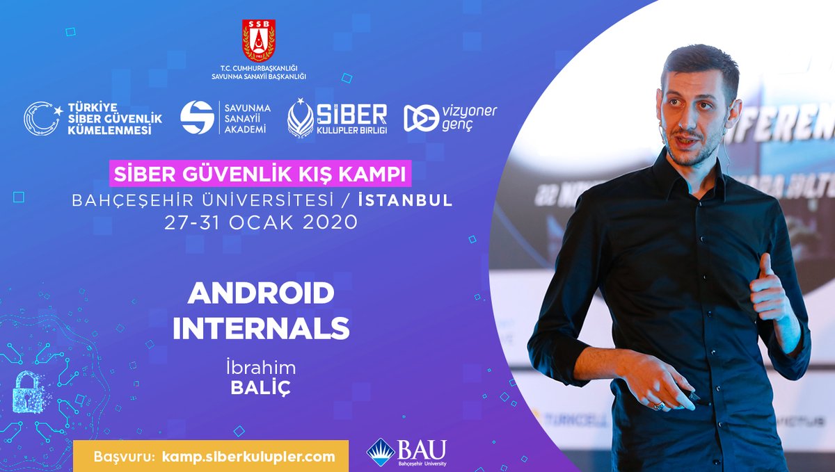 Android Internals - İbrahim BALİÇ Siber Güvenlik Kış Kampı 27-31 Ocak'ta Bahçeşehir Üniversitesinde! Son Başvuru 10 Ocak! Kaçırmayın! Başvuru: http://kamp.siberkulupler.com pic.twitter.com/VEefon1afP