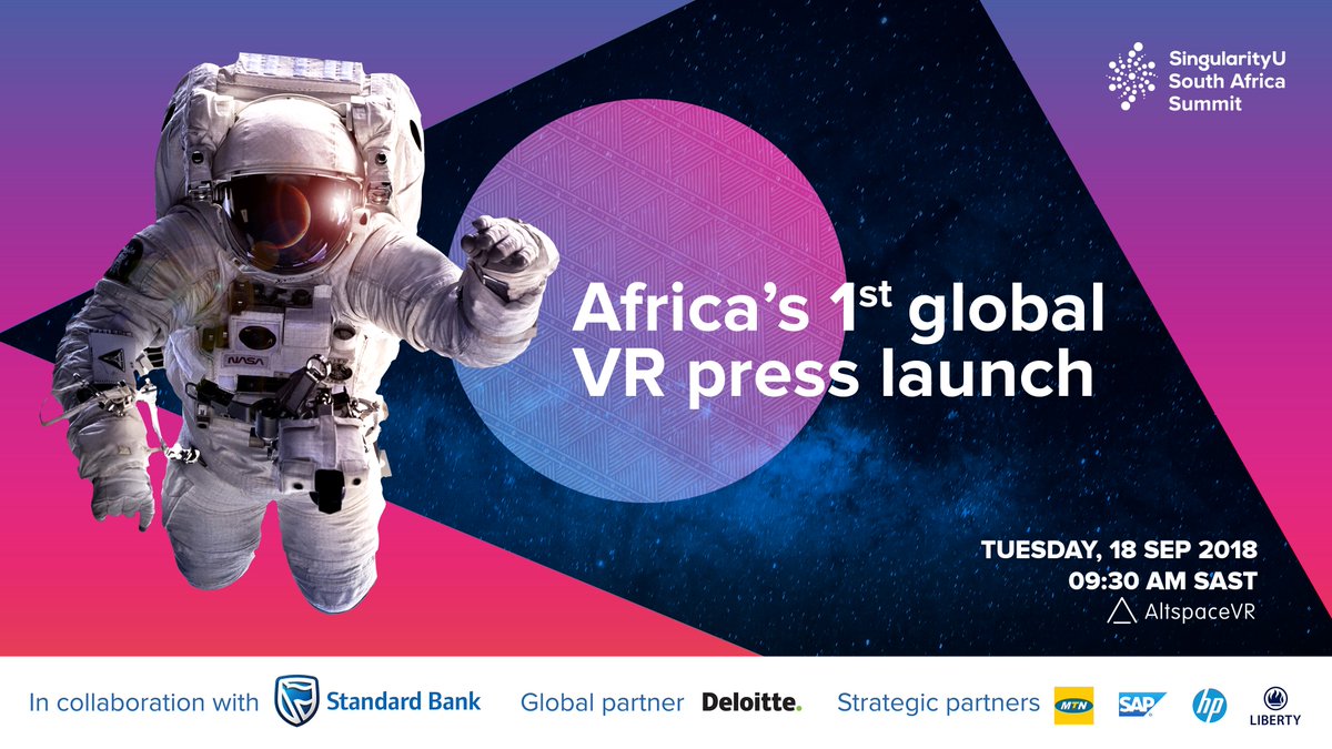 SingularityU South Africa Summit http://bit.ly/AltVR-SingularityU-0918 … Join us for Africa's 1st Global Virtual Reality Press Conference. @SUSouthAfrica#futureproofAfrica#SUSouthAfricapic.twitter.com/gzluTvvbIQ