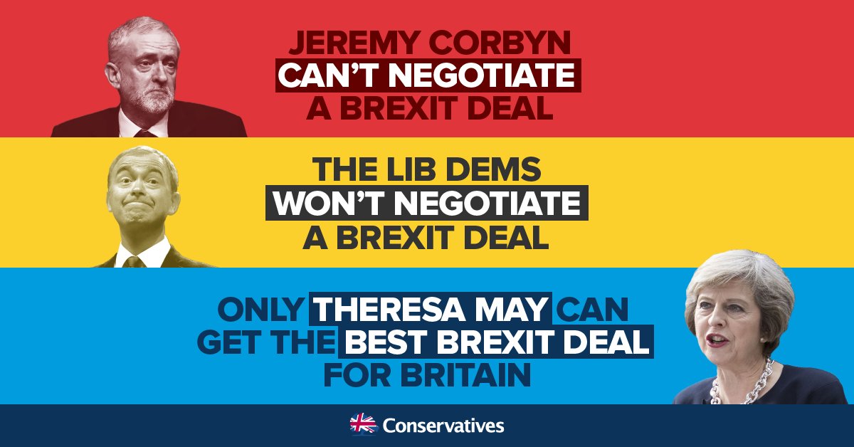 Getting the best Brexit deal for Britain: Corbyn can’t. Farron won’t. Only Theresa May will. RETWEETpic.twitter.com/nvFYVE6RMi