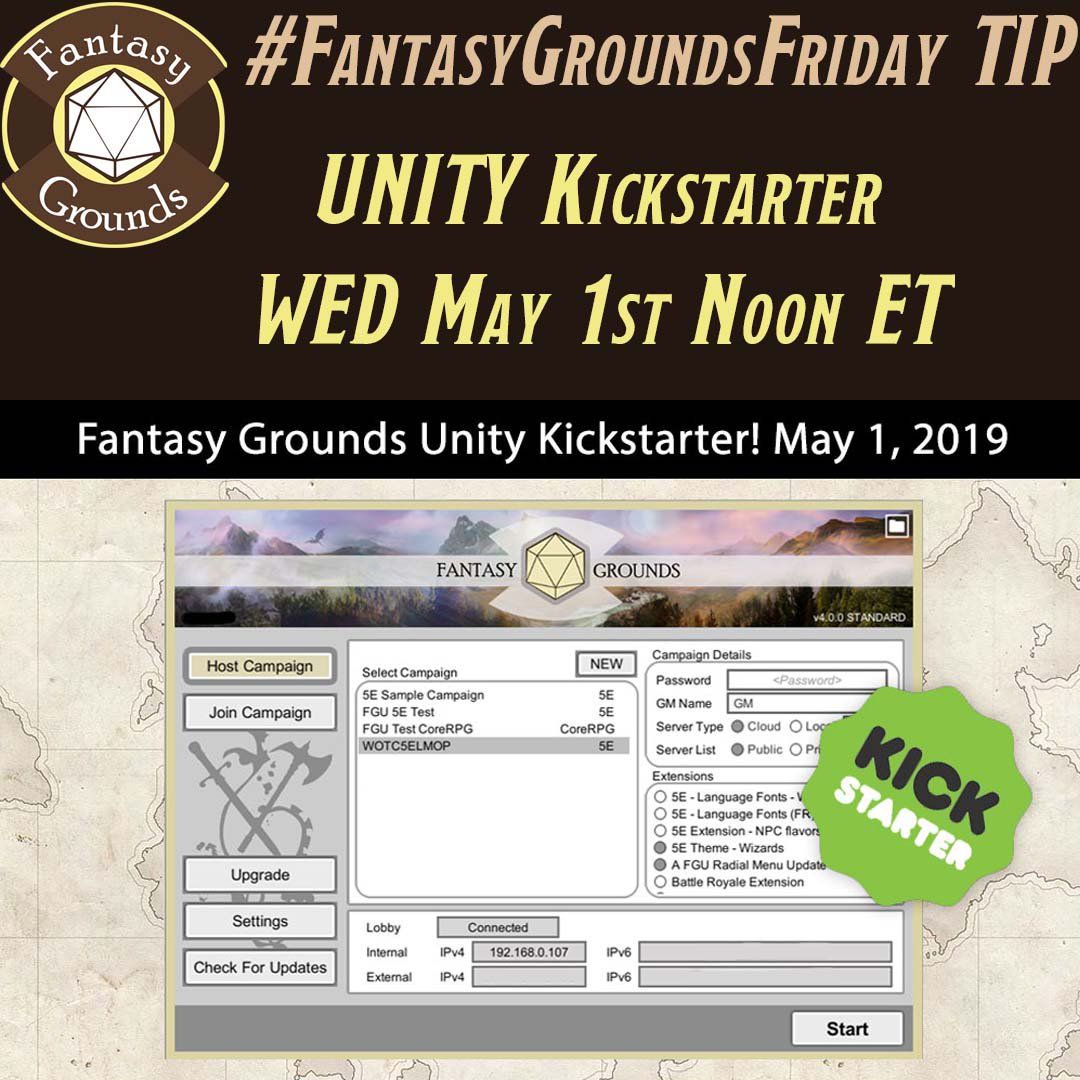 #FantasyGroundsFriday tip... If you've been living in the Underdark, get ready for the Fantasy Grounds Unity Kickstarter. It happens at NOON ET on May 1st. -Robpic.twitter.com/QF8FSNjErd