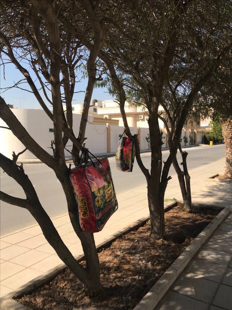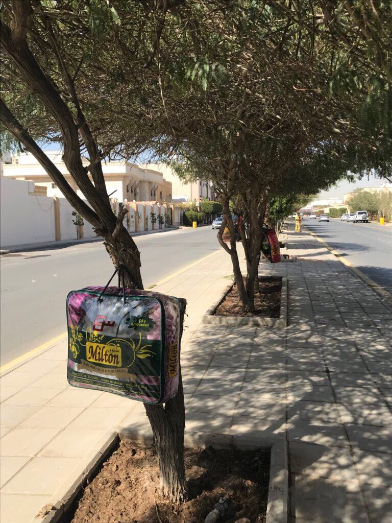 مررت صباح اليوم بحي الريان شرق الرياض، فوجدت أن أهل الحي قد زيّنوا أغصان الاشجار بالبطانيات لعلها تقع في أيدي المحتاجين لها وبالخصوص هذه الايام من الشتاء. عمل إنساني عظيم