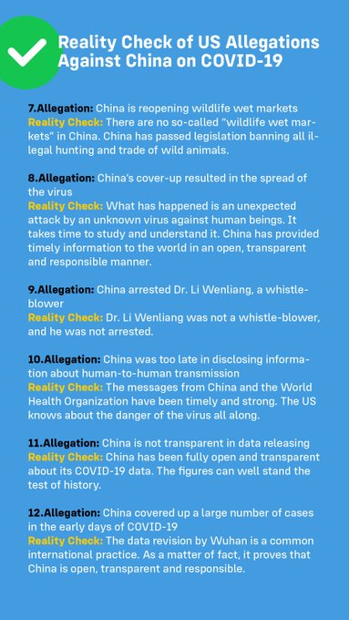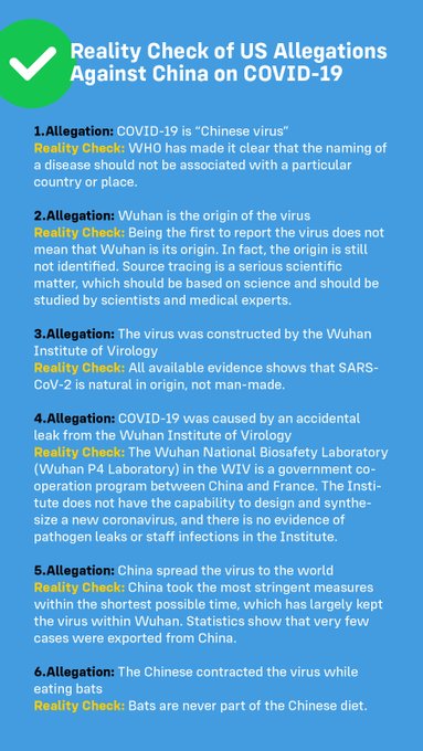 In the moment of crisis, the wise build bridges and the foolish build walls. It is time for some US politicians to overcome their absurd mind-set of "always blame China" and respect the TRUTH.