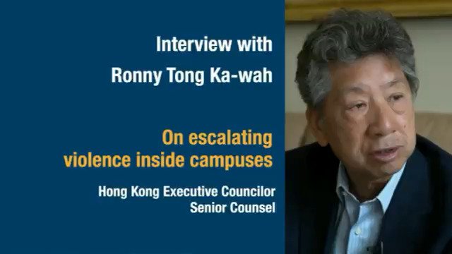 Interview with Ronny Tong Ka-wah on escalating violence inside campuses pic.twitter.com/icXxwoHjFs