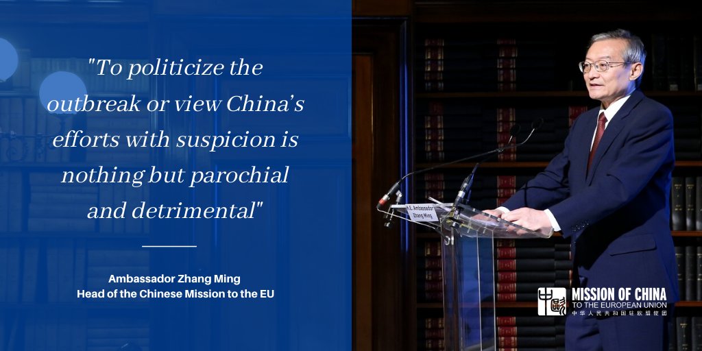 Ambassador Zhang urges countries to put aside politics and prejudice & not to politicize the fight against the #COVID19 in an op-ed published in the @BrusselsTimes , @EURACTIV and @euobs . Read the full article here: https://bit.ly/2vPJ2OM pic.twitter.com/mq65HN2jnv