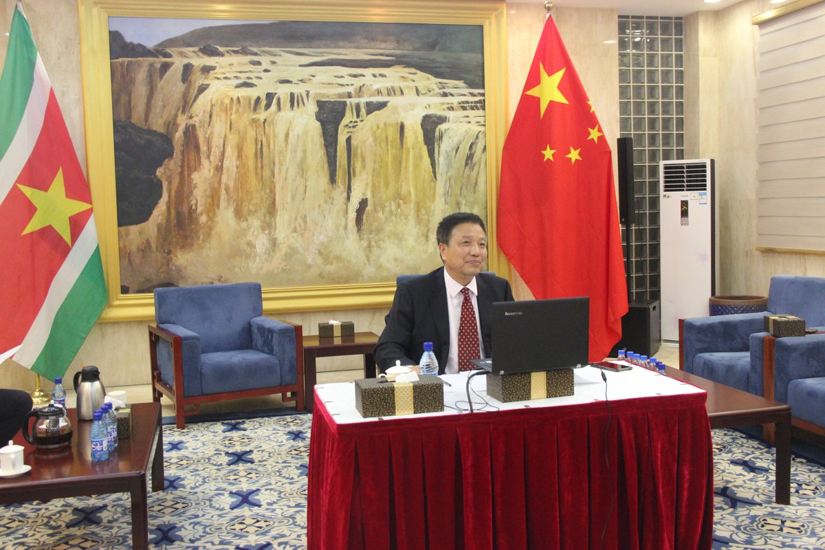 Glad to host COVID-19 Video-Conference between China and Suriname on May 18. Doctor Cleopatra Jessurun, Director of Health, Ambassador Mac Intosh, doctors from Suriname and from First Affiliated Hospital of Zhejiang University School of Medicine attended. Good cooperation.pic.twitter.com/I9diLh6iUM