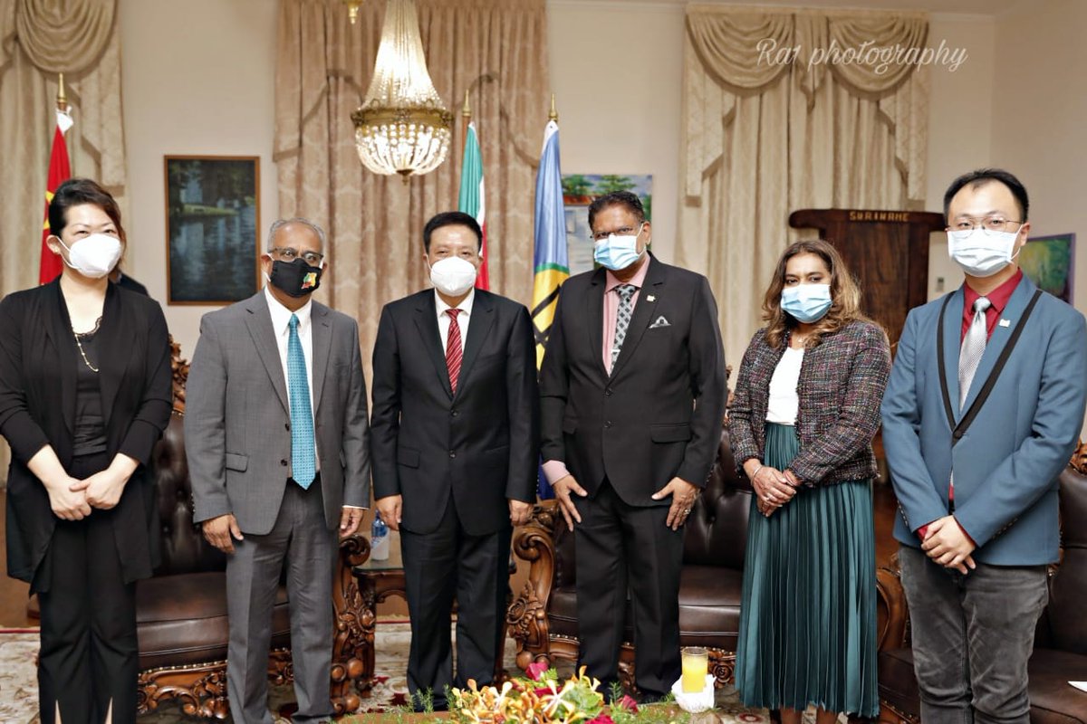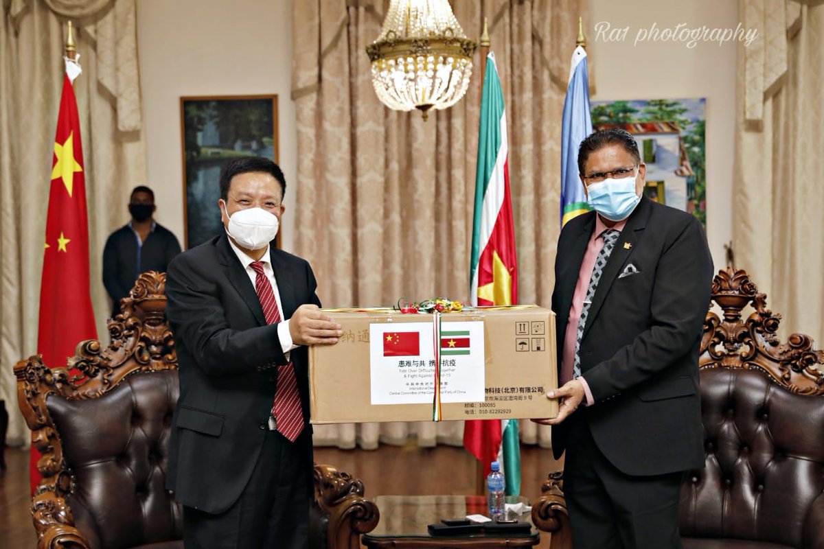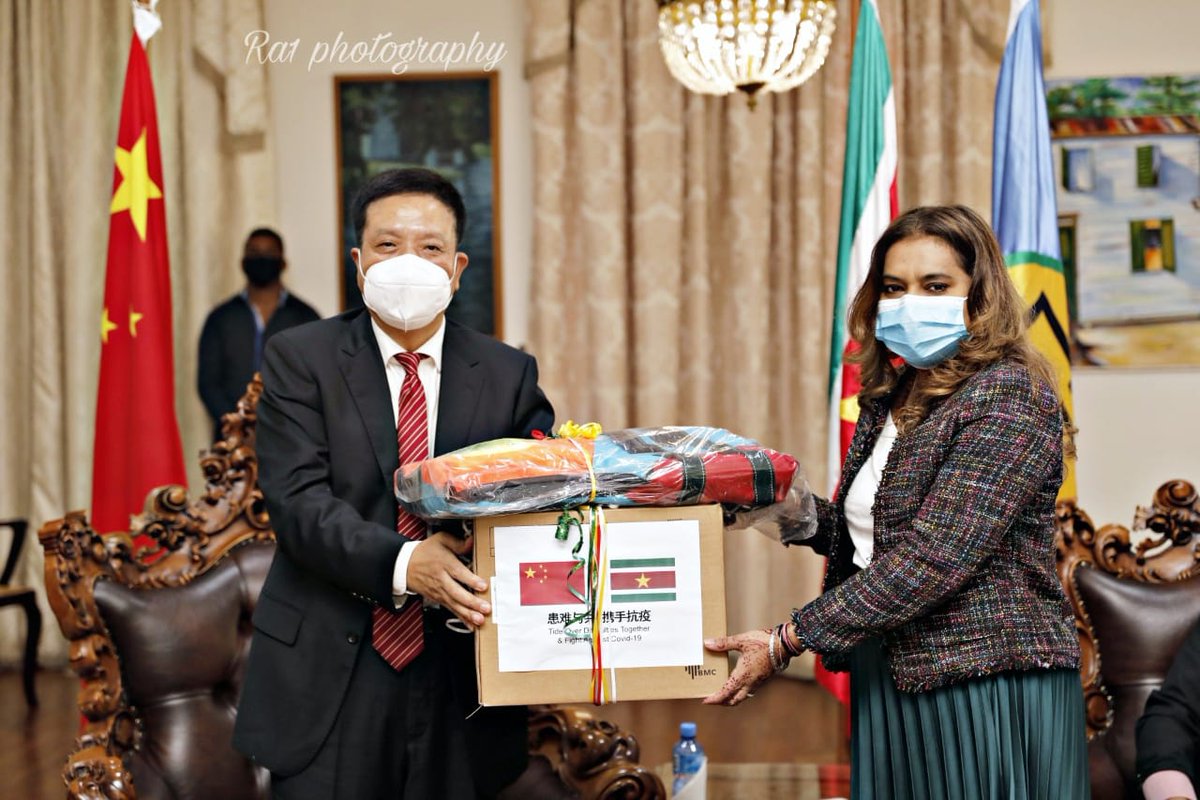 Honoured to meet H. E. Mr. Santokhi, President of the Republic of Suriname and First Lady. Chinese Government donated some medical supplies to Suriname and Embassy donated some equipment to the First Lady Office. China and Suriname are good friends and good partners.pic.twitter.com/aSnrhP6JSe