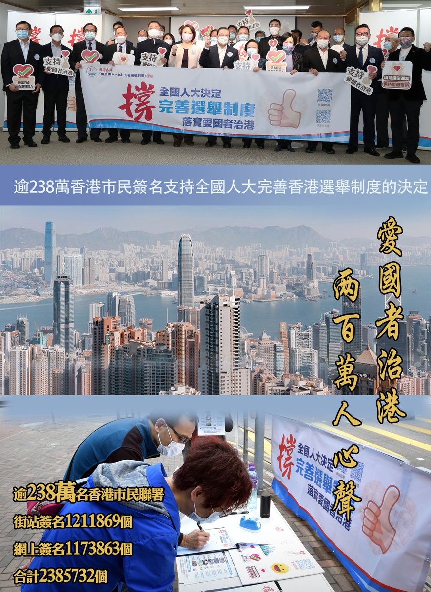 More than 2.38 million Hong Kong citizens have signed up to support the National People's Congress's decision to improve Hong Kong's electoral system pic.twitter.com/nJTVZPH42R
