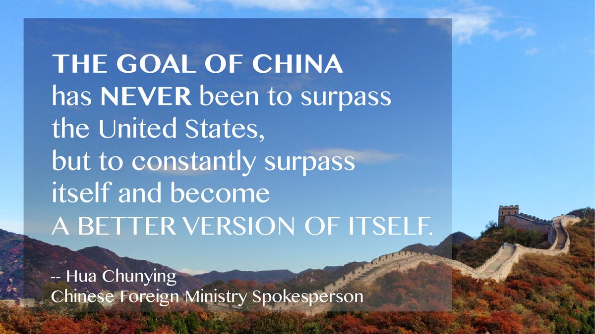 The goal of China has never been to surpass the United States, but to constantly surpass itself and become a better version of itself: FM spokesperson http://xhtxs.cn/cQw  pic.twitter.com/gvTAYlgHQl