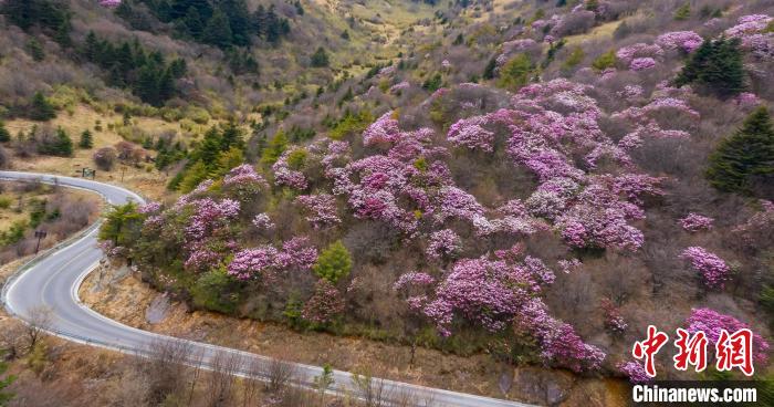 Azalea flowers bloom on the high-altitude mountains in the Shennongjia Forestry District in Hubei Province pic.twitter.com/Zj9wpTuXa5