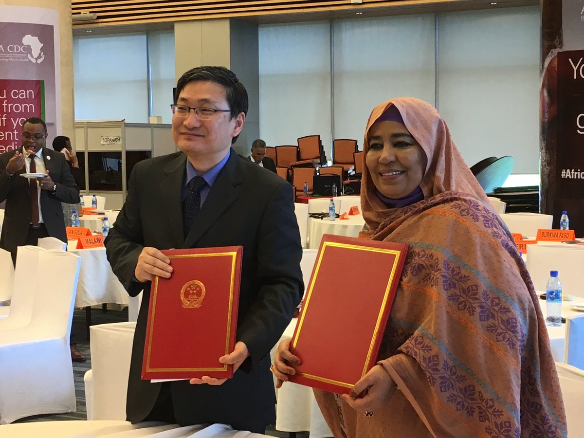 Signed the Hand-over Certificate of the Cash Aid for Support to Africa CDC with H.E. Commissioner Amira Elfadil. The one million US dollars cash aid represents the best wishes of Chinese government and Chinese people. Together we make difference in supporting Africa against Ebolapic.twitter.com/MZyNW5oXUK