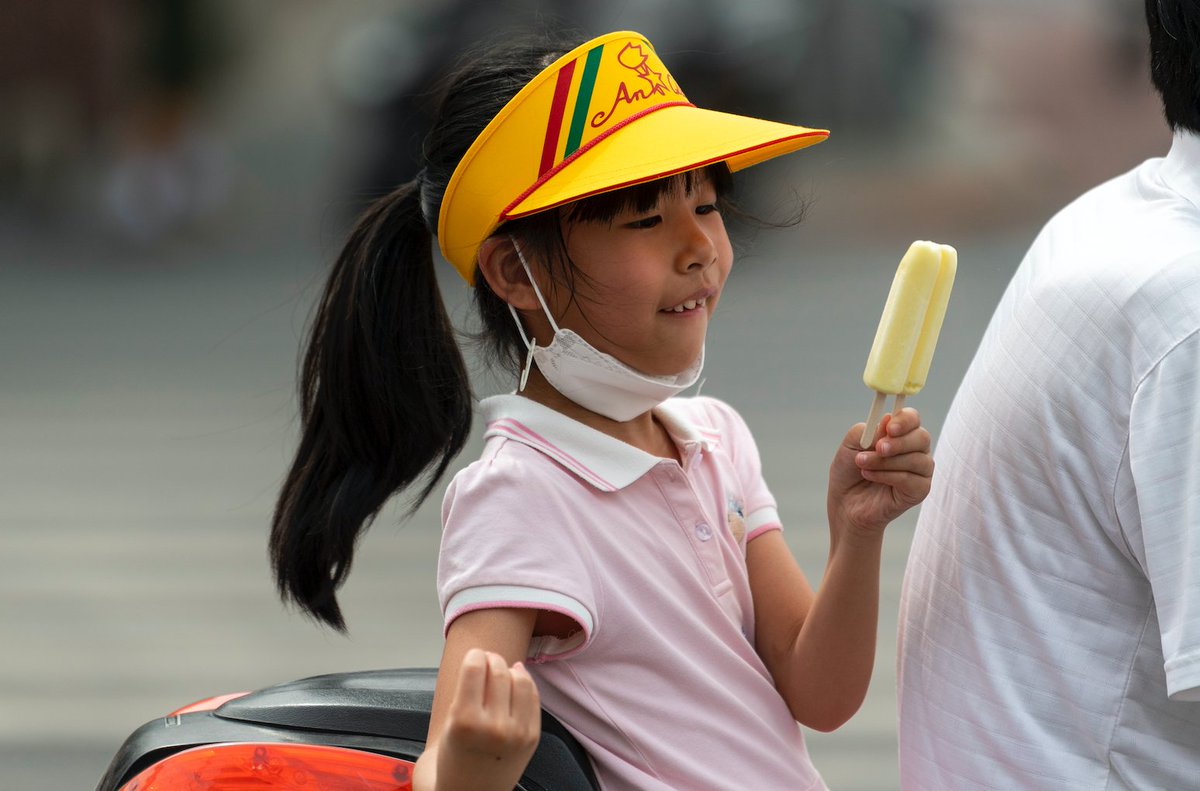 Scorching weather hits northern #China. Pedestrians use umbrellas and sun hats to protect themselves from the sunlight, while children dive into swimming pools to avoid the intense summer heat. pic.twitter.com/oMM1wkwLOK