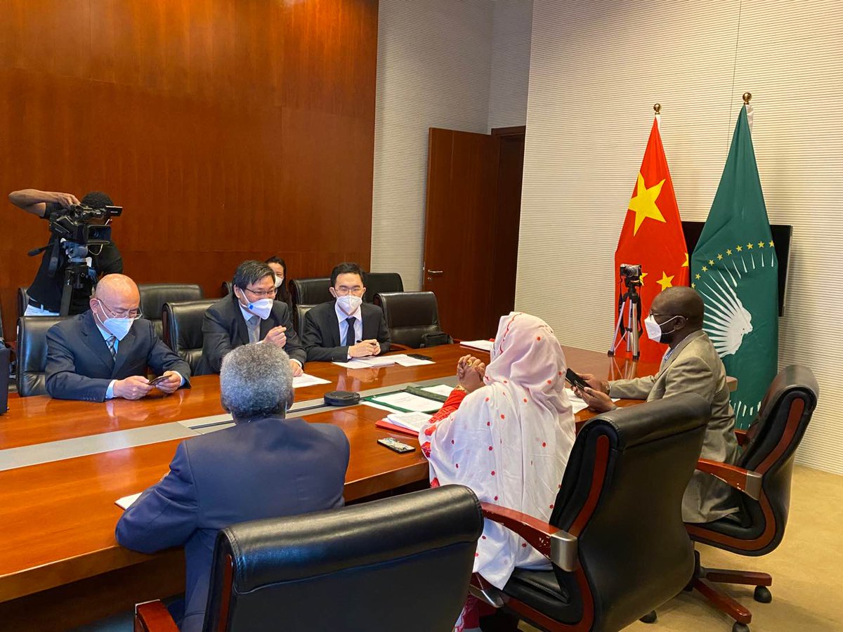 Very honored to attend the video signing ceremony for the Implementation Agreement of the China-Aided Africa CDC between Qian Keming, Chinese vice-minister of Commerce and AUC Commissioner Amira @AmiraDSA . Congratulations! Defeating COVID-19 with solidarity and cooperation!pic.twitter.com/geslAbiIhx