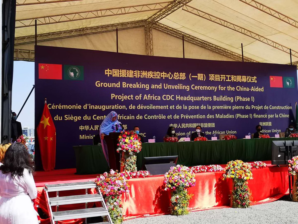 1/2 The ground breaking and unveiling ceremony for the China aided Project of African CDC Headquarters building is ongoing. This project will have major benefits for African health care system and African people's health.pic.twitter.com/F0IgF0fUMP