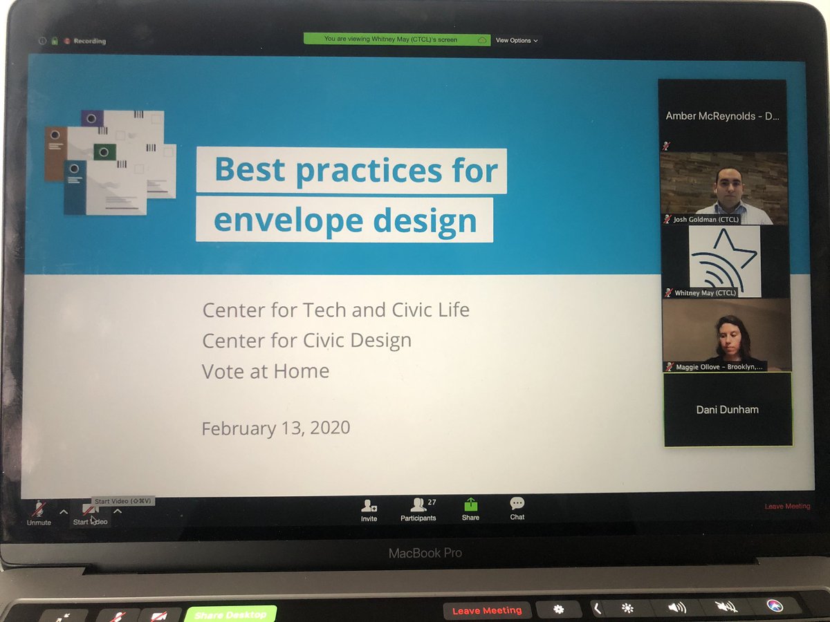 Here we go. First @voteathome webinar series lead by @HelloCTCL & @civicdesign. There is @HiThereItsJosh & @MaggieOllove 😃 & they are incredible trainers & professionals working to support election officials with resources. #elections2020 #votebymail #vote #electiontwitterpic.twitter.com/JYIjvrehXK