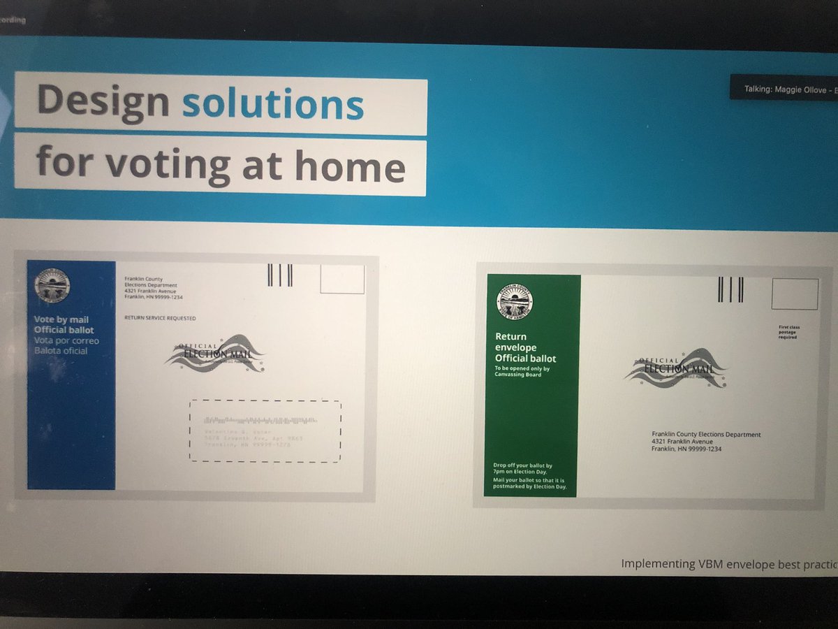 .@civicdesign @MaggieOllove presenting best practices for mail ballot envelopes. #election2020 #designpic.twitter.com/1xznFcqTpo