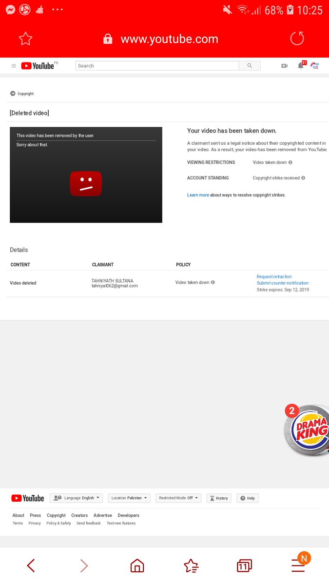 Sir I already email YouTube team nd that girl but not reply that girl nd strike will remove on 12 spet