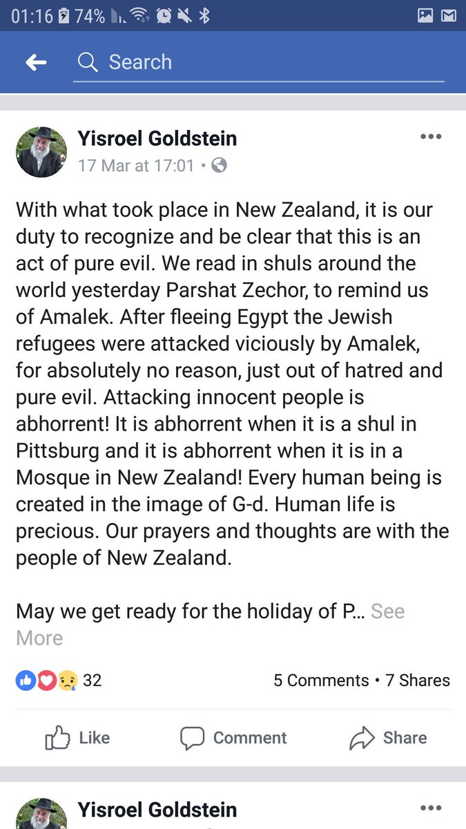 Rabbi Goldstein of Poway Chabad wrote a piece about the terrorist attack in New Zealand last month. "Attacking innocent people is abhorrent " he wrote on Facebook.