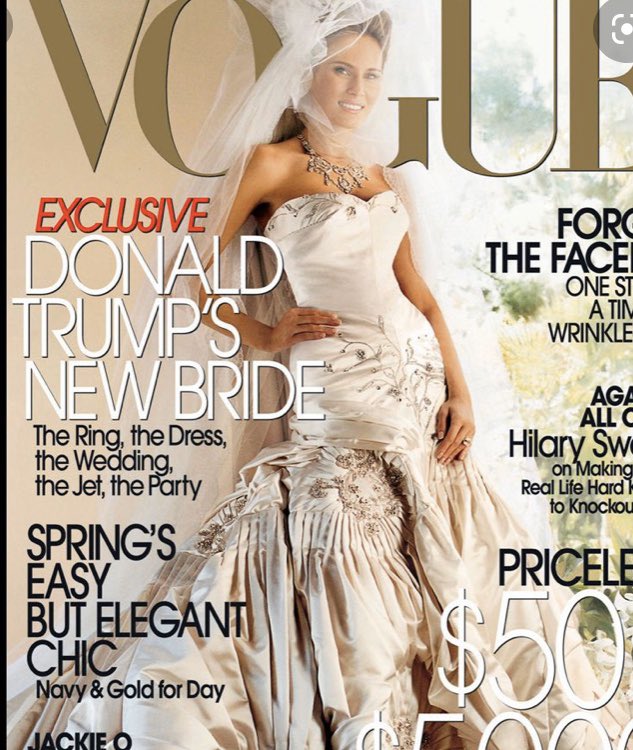 Fifteen years ago today Donald Trump married Melania Knauss in a church ceremony, followed by a lavish reception at Mar-a-Lago. To mark the occasion, Anna Wintour put Melania on the cover of Vogue. *FWIW, the 15-year gift is crystal.pic.twitter.com/3EN1PkxcX5