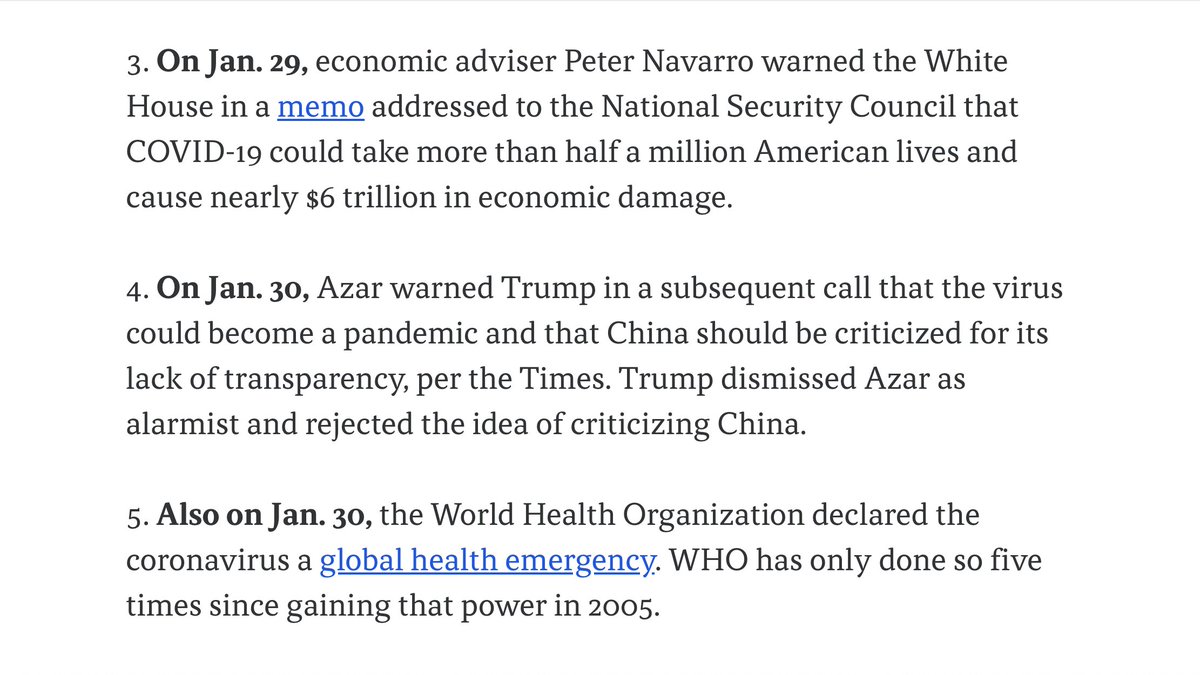 1/31: The Trump Administration: -Declared COVID-19 a public health emergency -Announced Chinese travel restrictions -Suspended entry into the US for foreign nationals who pose a risk of transmitting COVID-19 1/31: DHS began funneling all flights from China into 7 airportspic.twitter.com/yF5L4P85Dt