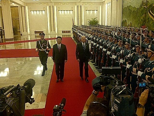 PHOTO: VPs Biden and Xi review the troops at Welcome Ceremony in Beijing #VPinAsiapic.twitter.com/tVjE0jB