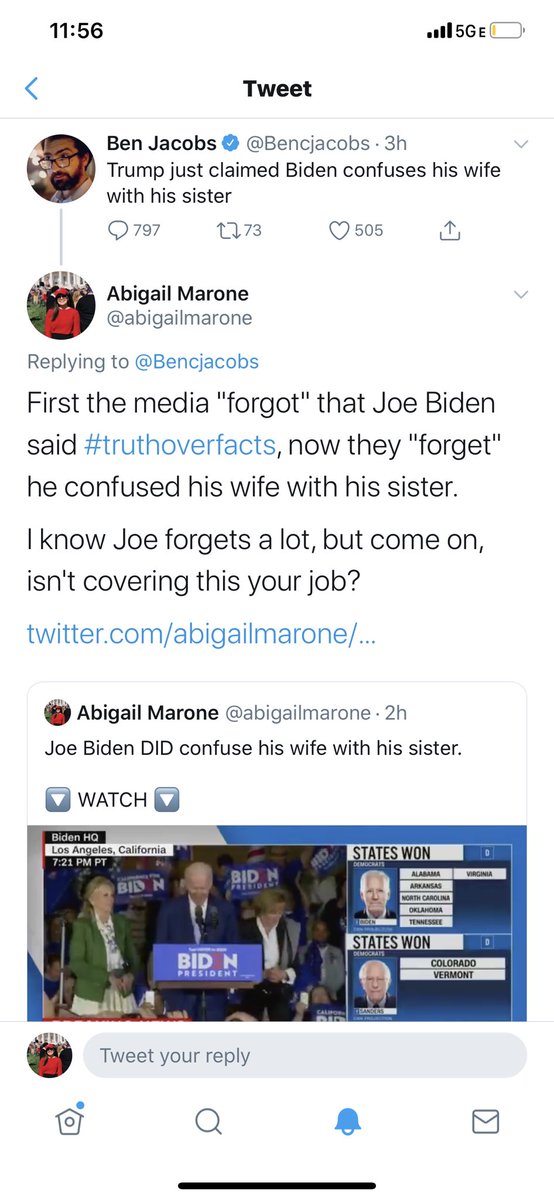 Ben Jacobs has achieved a double ratio for “forgetting” Joe Biden confused his wife with his sister. Outstanding work, Ben pic.twitter.com/ly8w7U2Khg