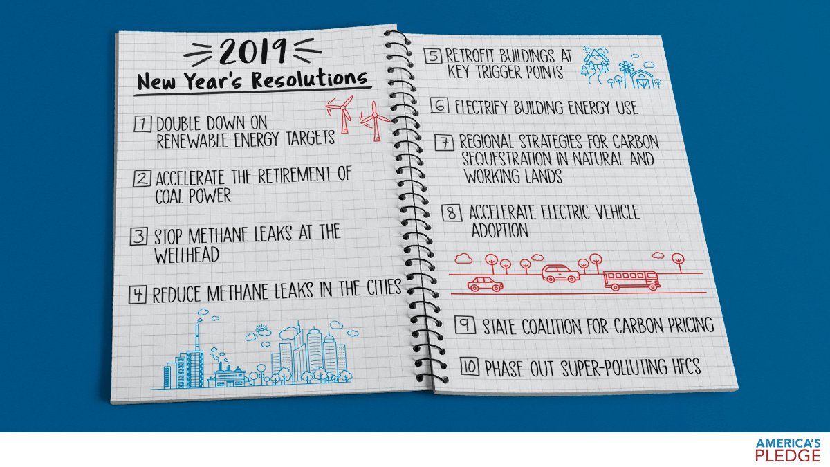 #HappyNewYear from#AmericasPledge! As we kick off 2019, here are some of the best New Year's resolutions for bottom-up climate action.pic.twitter.com/N8atNPIOCN