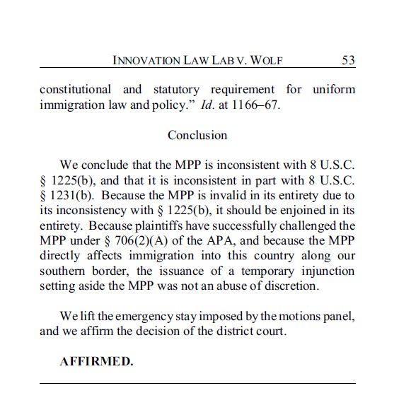 Major win and important news. MPP is a terrible policy which has harmed tens of thousands of people, and the US implementation of it is a stain on our national conscience. Unfortunately, not sure what this means for those already in MPP.https://twitter.com/OmarJadwat/status/1233440541938987009 …