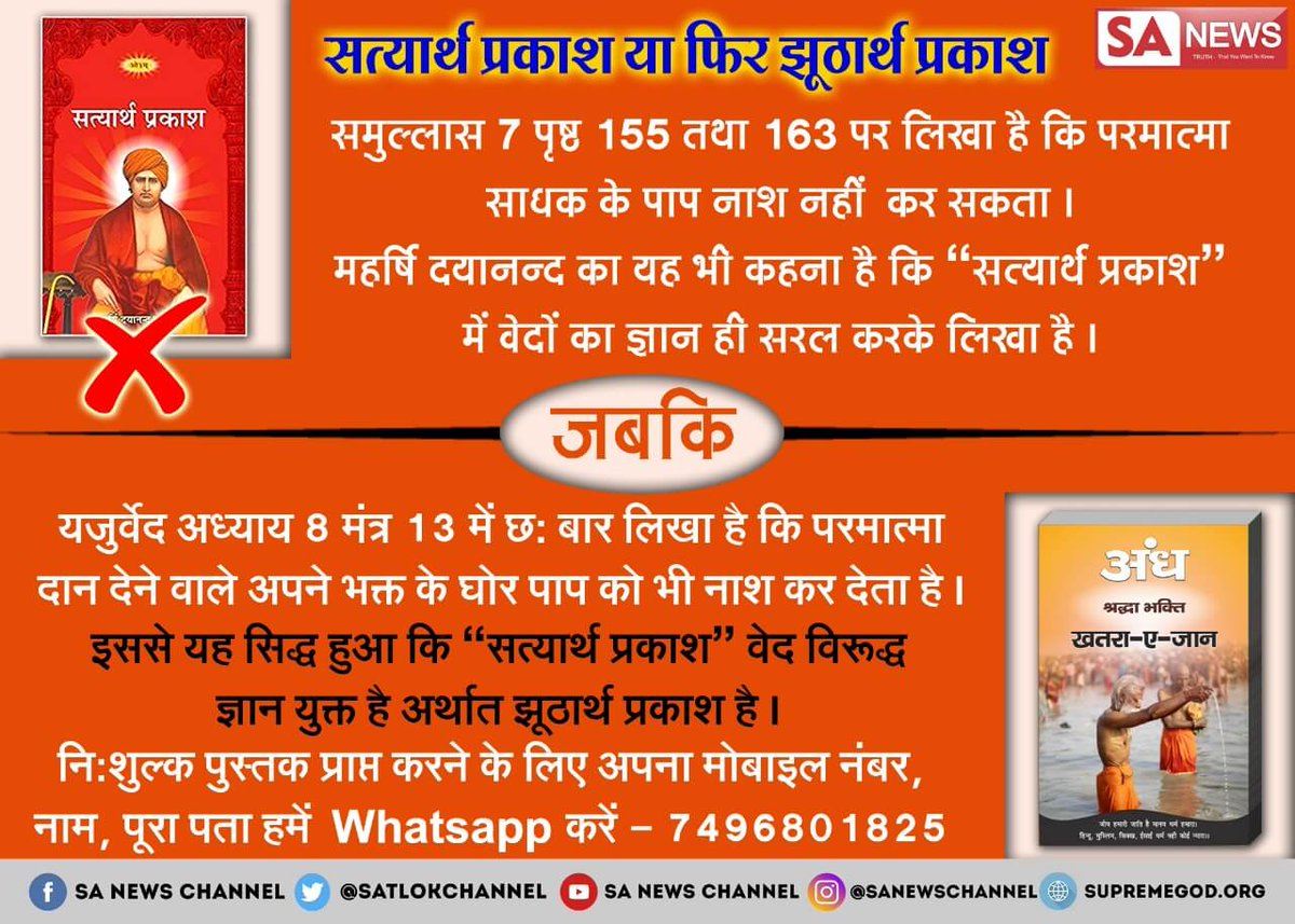 #सचVSझूठ महर्षि दयानंद जी का ज्ञान किसी भी वेद से नही मिलता और वो कह रहे है कि हमारा ज्ञान वेदो के अनुसार है तो वे कौन से वेद से अपना ज्ञान बता रहे थे या फिर अपनी बनाई बातें समाज मे फैला रहे थे। देखिए साधना चैनल शाम 7ः30 बजे।@yogrishiramdev@cmohry@majorgauravaryapic.twitter.com/i9TwbGuaMD