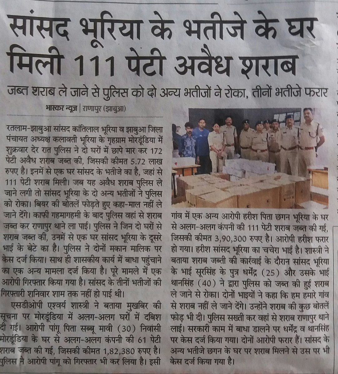 मप्र मे दिग्विजय सिंह के खास कांतिलाल भूरिया के घर से लाखो रूपए की शराब जब्त की क्या कांग्रेस शराब शबाब कबाब के दम पर चुनाव जीतना चाहती है। कांग्रेसियों है कोई इसका जबाब?pic.twitter.com/Jacyc99zt6